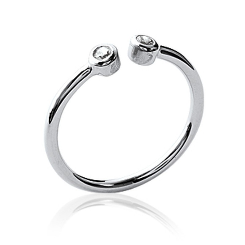 Bague ouverte en argent massif 925/1000 rhodié pierres serties clos en zirconium blanc