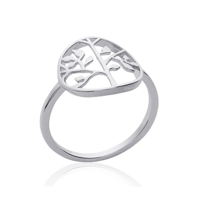 Bague en argent massif 925/1000 rhodié anneau arbre de vie