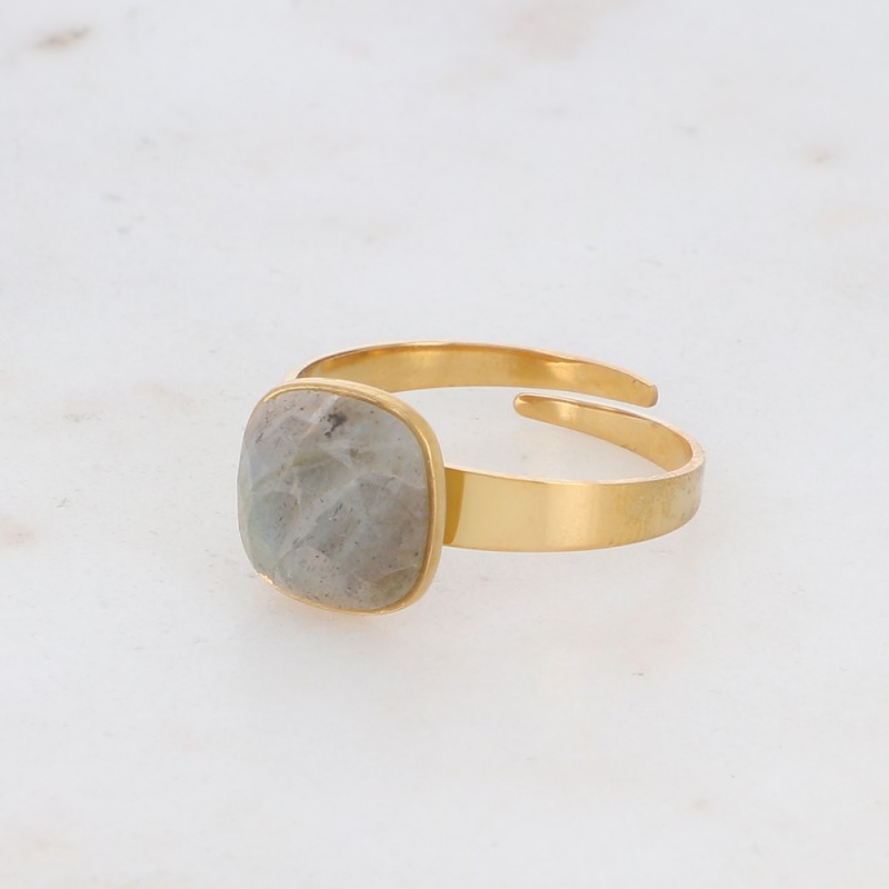 Découvrez cette adorable bague ornée d'une pierre facettée en véritable Labradorite