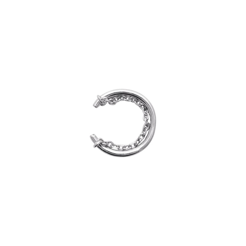 Bague d'oreilles en argent 925/1000 rhodié avec petite chaine
