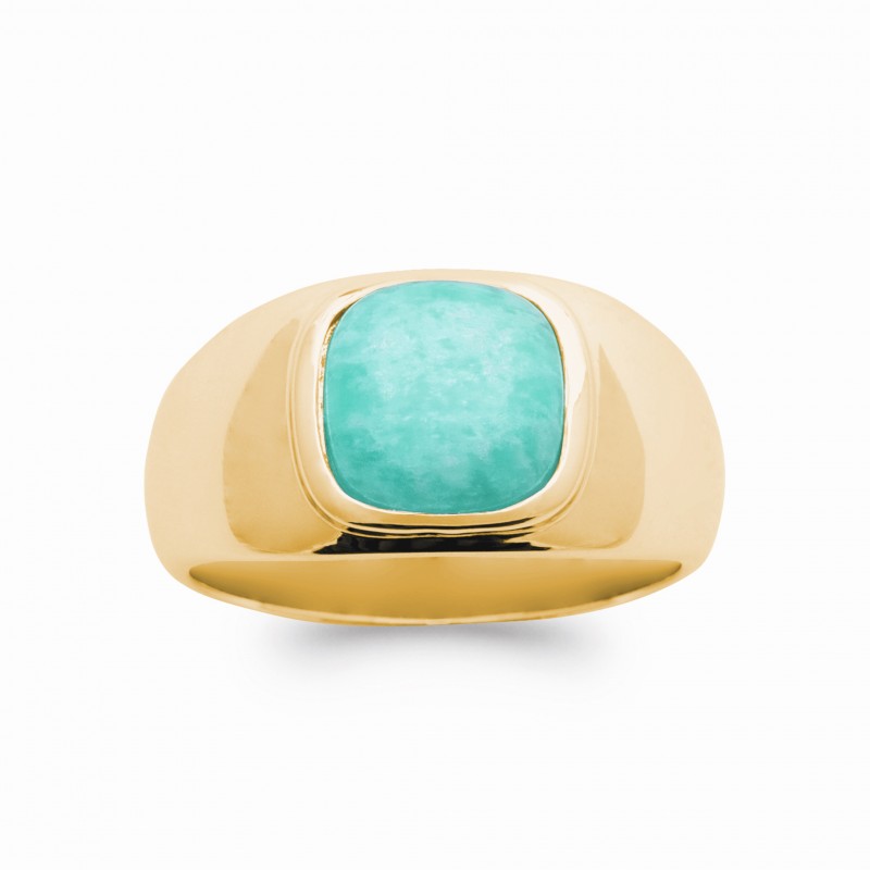 Bague large en plaqué or avec véritable pierre carré en Amazonite