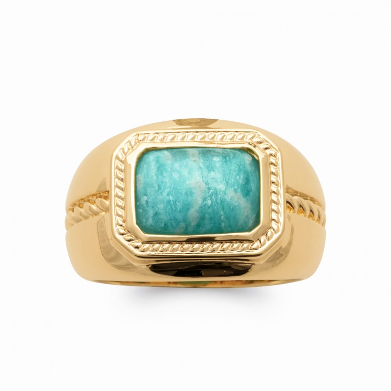 Bague large plaqué or pierre rectangulaire en Amazonite véritable