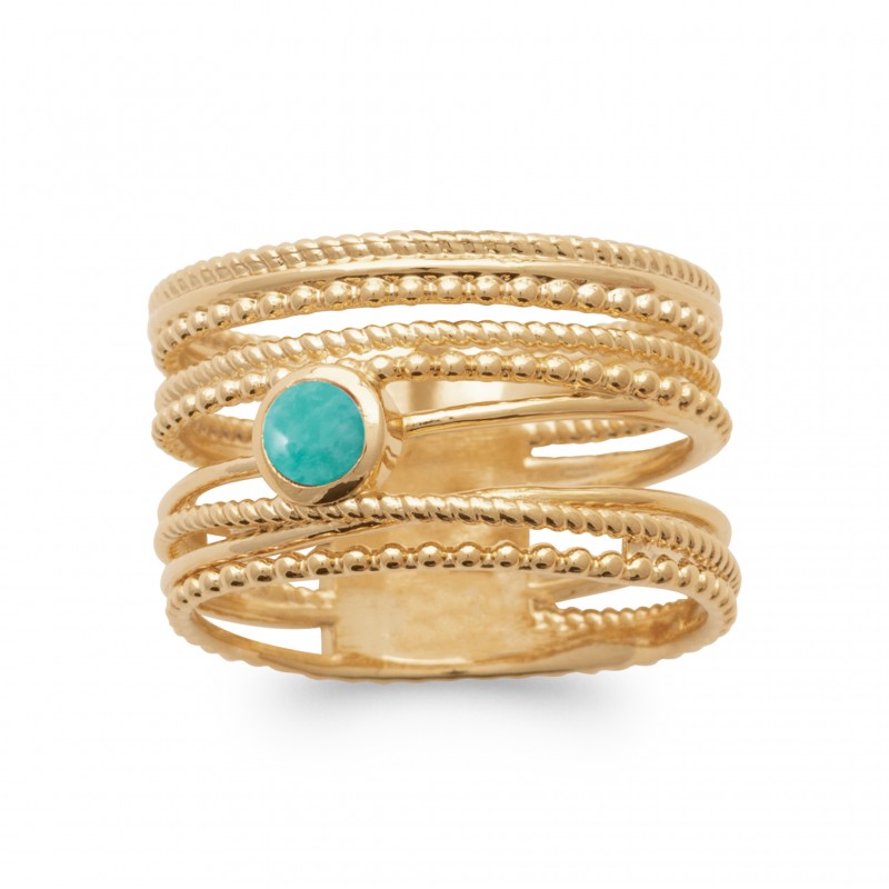 Bague plaqué or multi-rangs pierre amazonite
