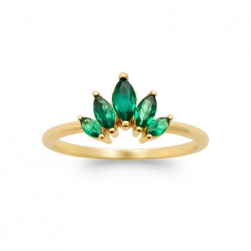 Vous ne pourrez plus vous passer de cette magnifique bague pour femme en Plaqué or à la forme de petite gouttes en cristal vert.