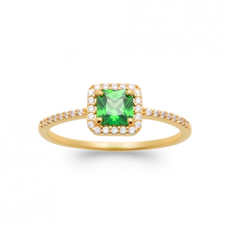 Bague doré plaqué or pierre carré en cristal vert et zirconium