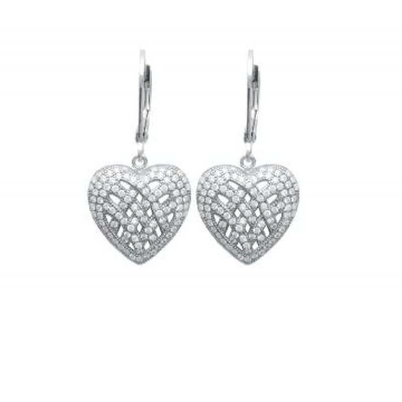 De la classe pour cette paire de boucles d'oreilles fermoir dormeuses en argent massif 925/1000 rhodié cœur ciselé pavé en zirconium blanc