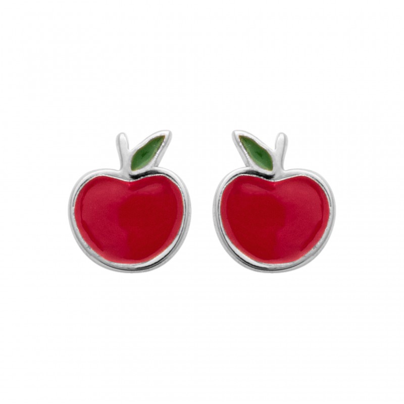 Les puces d'oreilles Obrillant-Bijoux sont en argent rhodié au motif d'une pomme rouge en émail