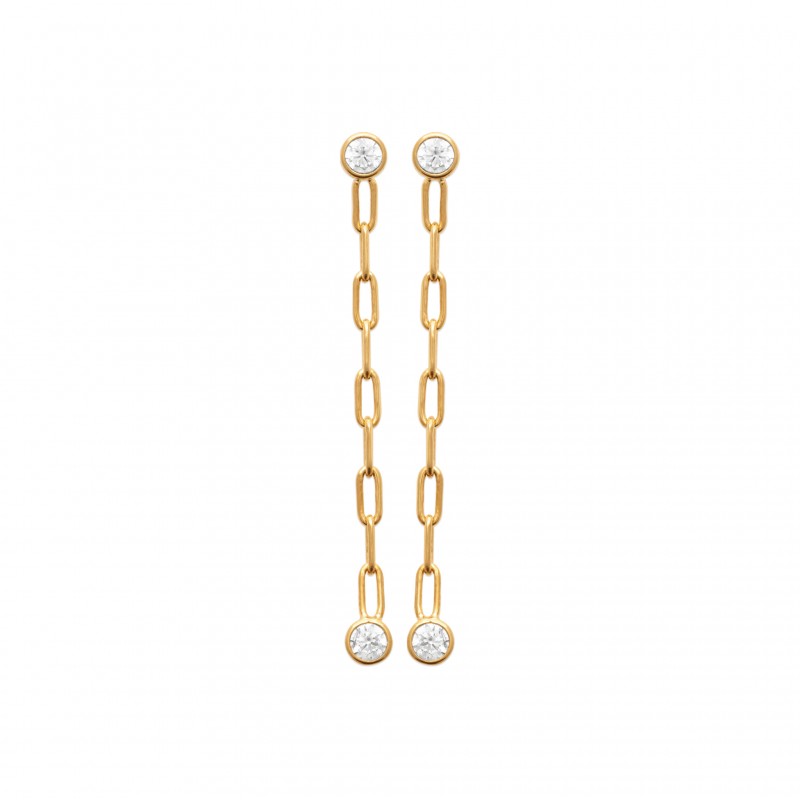 Boucles d'oreilles longues en plaqué or pierre sertie clos en zirconium blanc