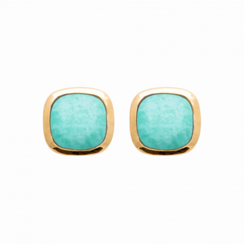 Boucles d'oreilles en plaqué or pierre carré en Amazonite véritable