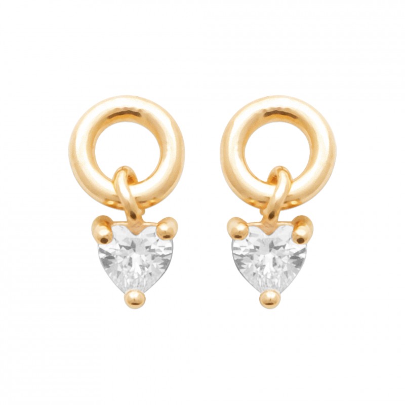 Boucles d'oreilles Plaqué Or pampille coeur pierre en zirconium