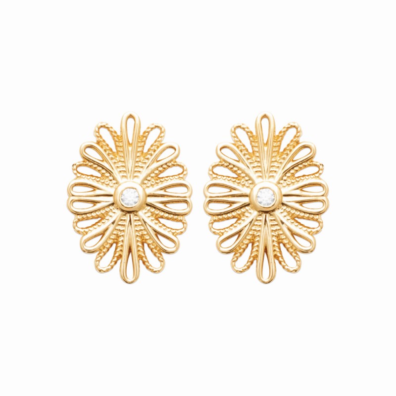 Boucles d'oreilles Puces Plaqué or Fleurs dentelle zirconium Obrillant-Bijoux