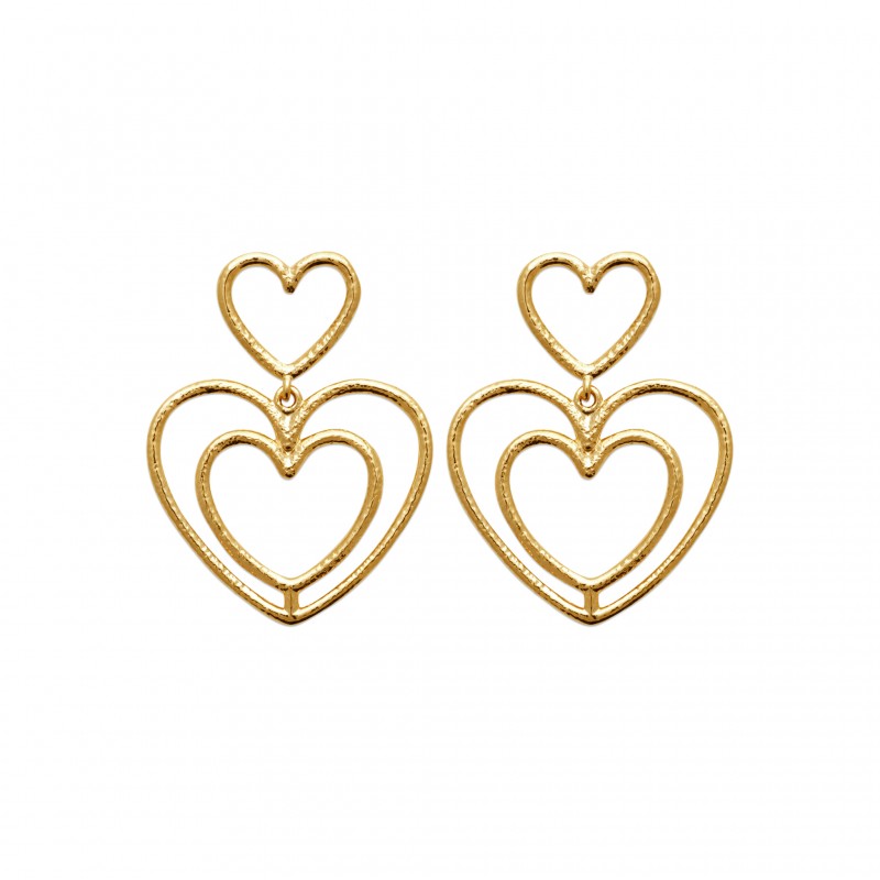 Boucles d'oreilles plaqué or pendantes coeurs