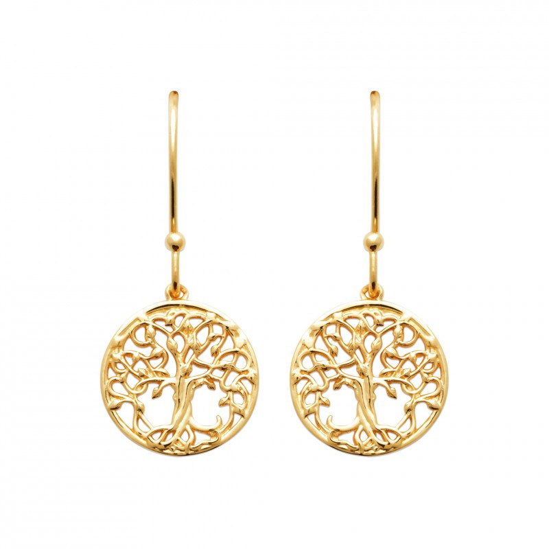 Boucles d'oreilles arbre de vie crochets en Plaqué Or