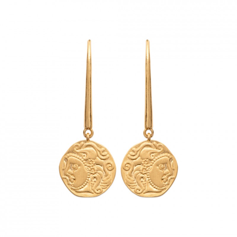 Boucles d'oreilles en plaqué or médailles visages style antique et artisanal