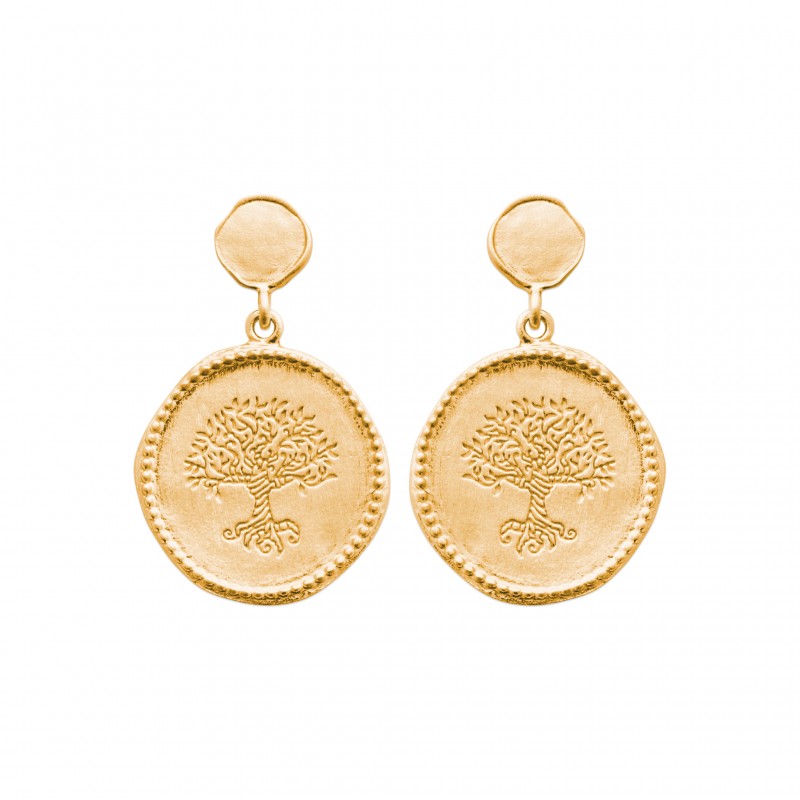 Boucles d'oreilles pendantes en plaqué or pastille arbre de vie