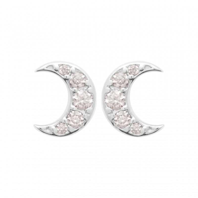 Boucles d'oreilles puces argent lune pavé zirconium
