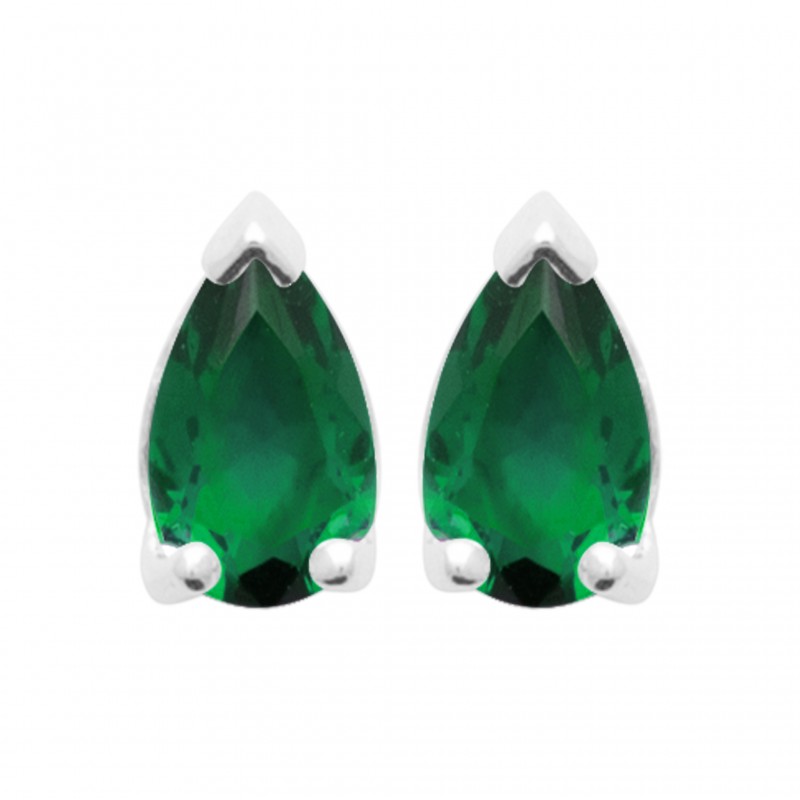 Vous ne pourrez plus vous passer de cette magnifique paire de boucles d'oreilles puces femme en Argent pavé d'une pierre vert émeraude en forme de goutte.