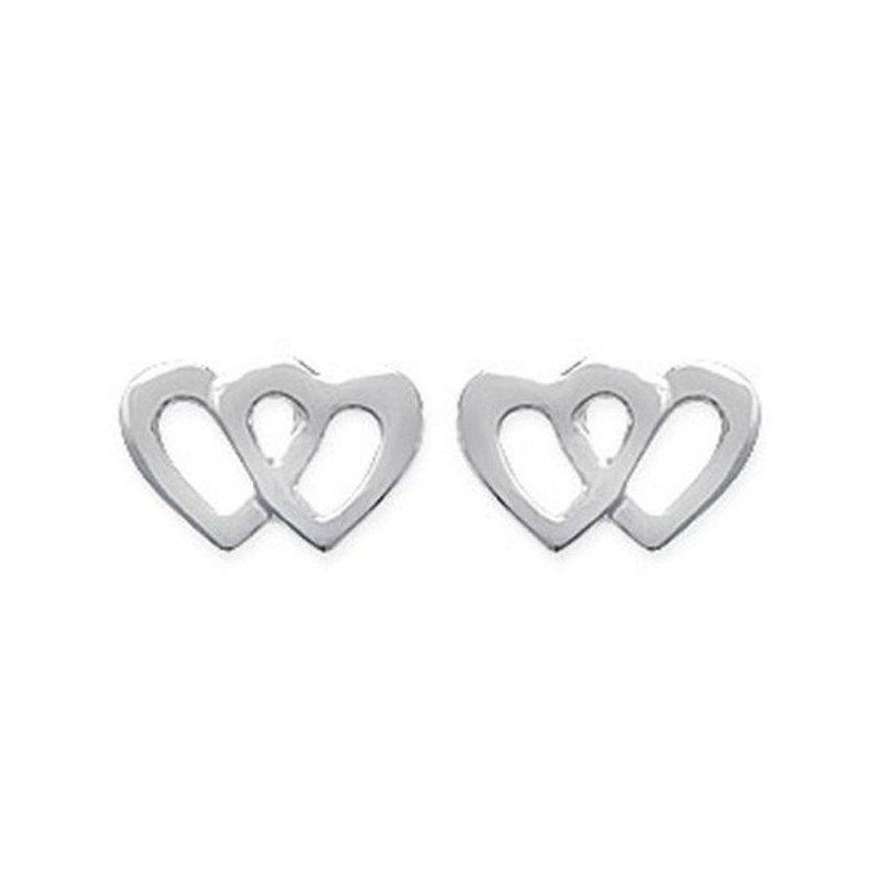 Boucles d'oreilles puces en argent massif 925 rhodié enfant coeurs entrelacés