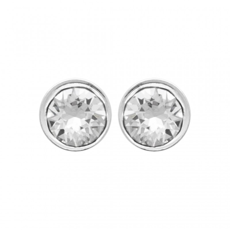 Boucles d'oreilles puces en argent massif 925/1000 pierre ronde 4 mm en cristal blanc sertie clos