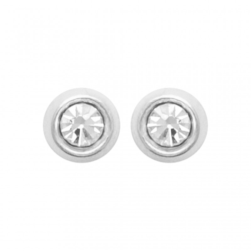 Elégante paire de boucles d'oreilles puces en argent massif 925/1000 pierre ronde serti clos en cristal blanc