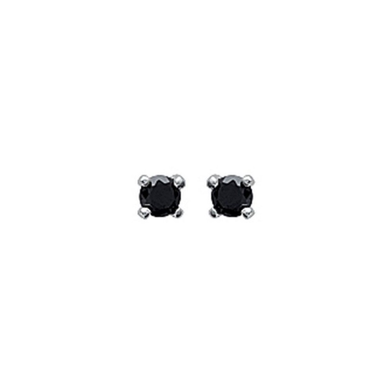 Discrète et intemporelle paire de puces d'oreilles en argent 925/000 rhodié pierre ronde sertie 4 griffes en oxyde de zirconium noir 3 mm
