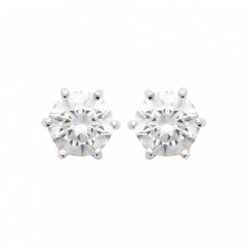 Puces d'oreilles en argent 925 rhodié pierre ronde 7 mm en zirconium blanc 6 griffes