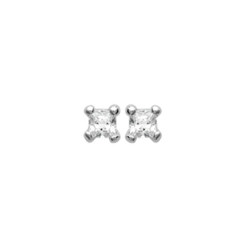 Puces d'oreilles en argent 925 rhodié pierre carré 2 mm en zirconium blanc
