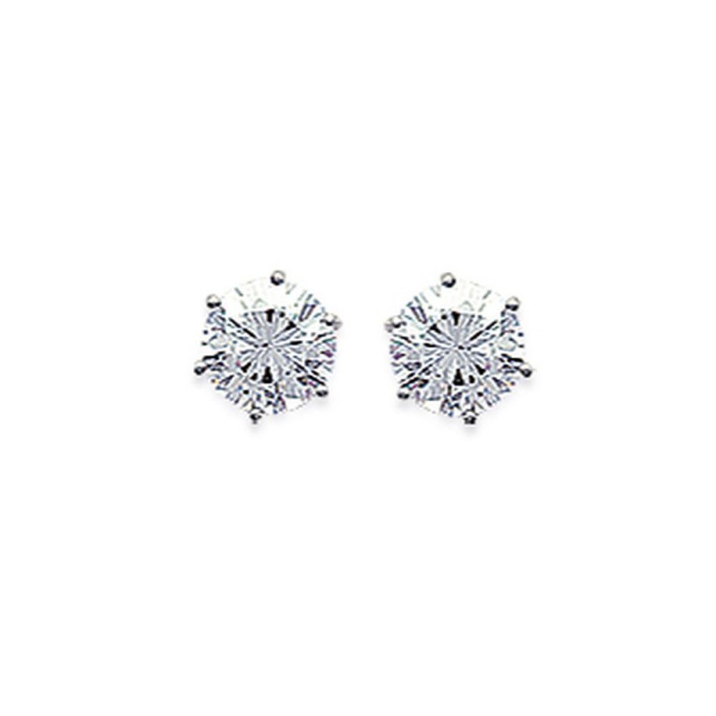 Puces d'oreilles en argent 925 rhodié pierre ronde 5 mm en zirconium blanc 6 griffes