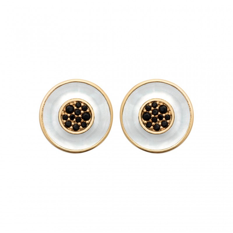 Esprit chic pour cette paire de boucles d’oreille en plaqué or rondes avec pierre en nacre pavé en zircons noir
