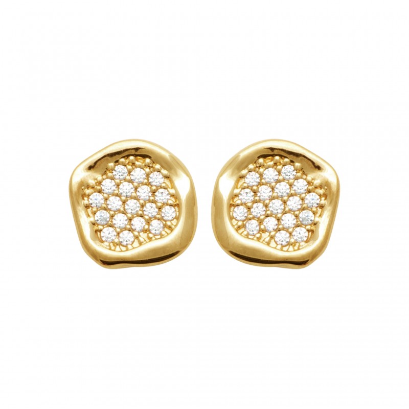 Puces d'oreilles plaqué or pavé en zirconium blanc