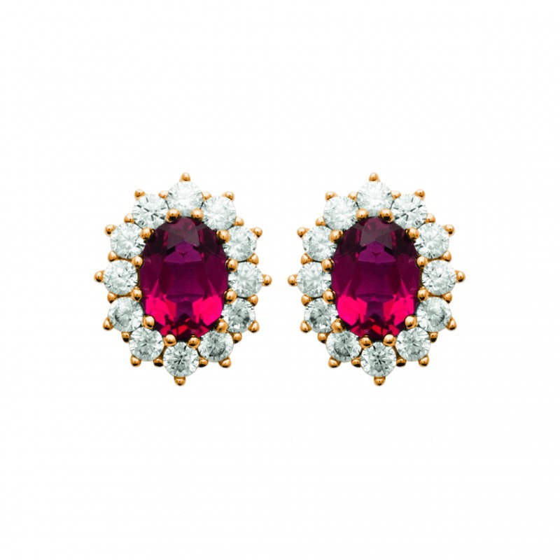 Puces d'oreilles en plaqué or pierre en cristal rouge et zirconium joaillerie