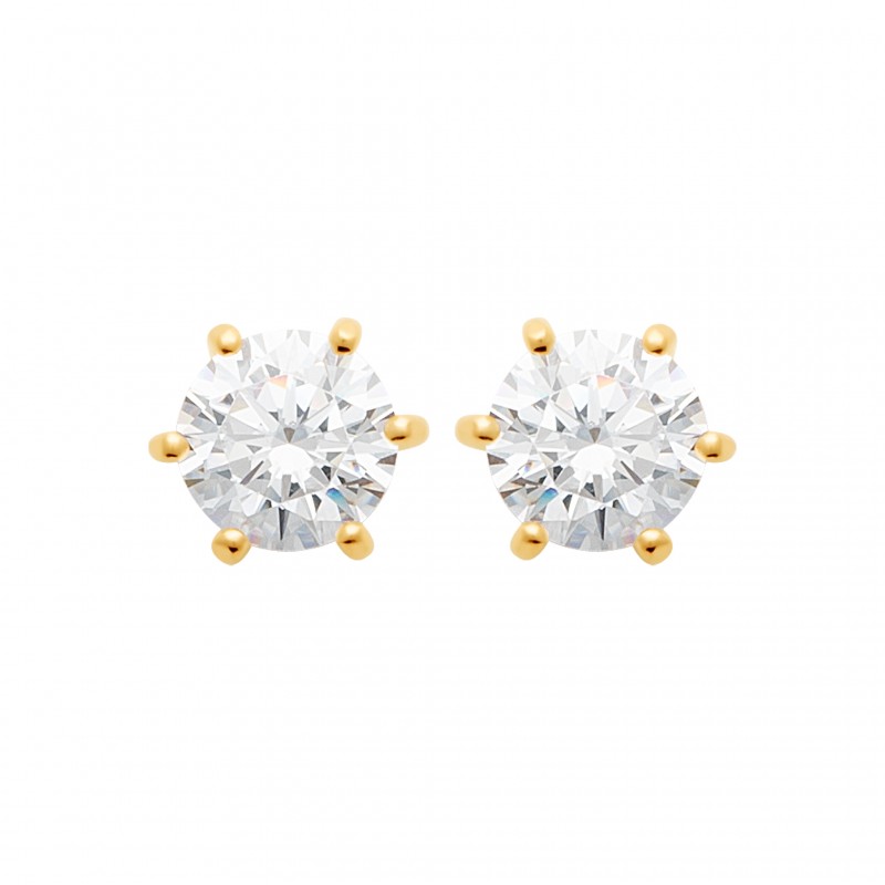 Du raffinement pour cette paire de puces d'oreilles en plaqué or 6 griffes pierre en zirconium blanc 6 mm.