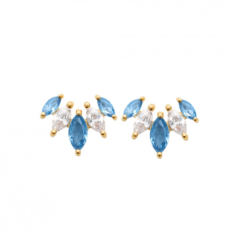 Boucles d'oreilles puces plaqué or pierres ovales cristal bleu