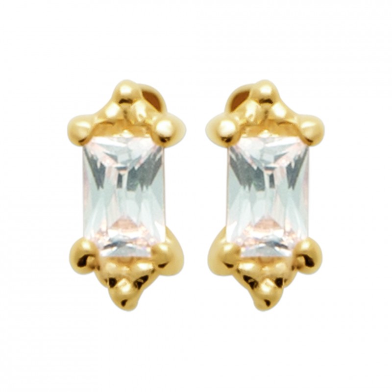 Boucles d'oreilles puces en plaqué or pierre rectangle en zirconium