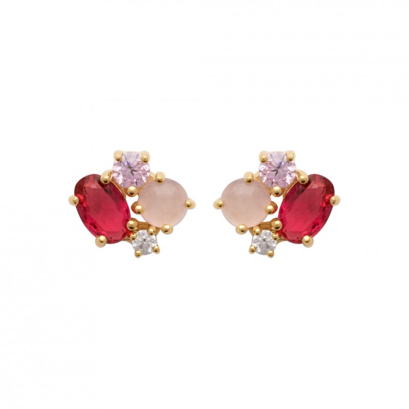 Boucles d'oreilles puces plaqué or pierres roses et zirconium
