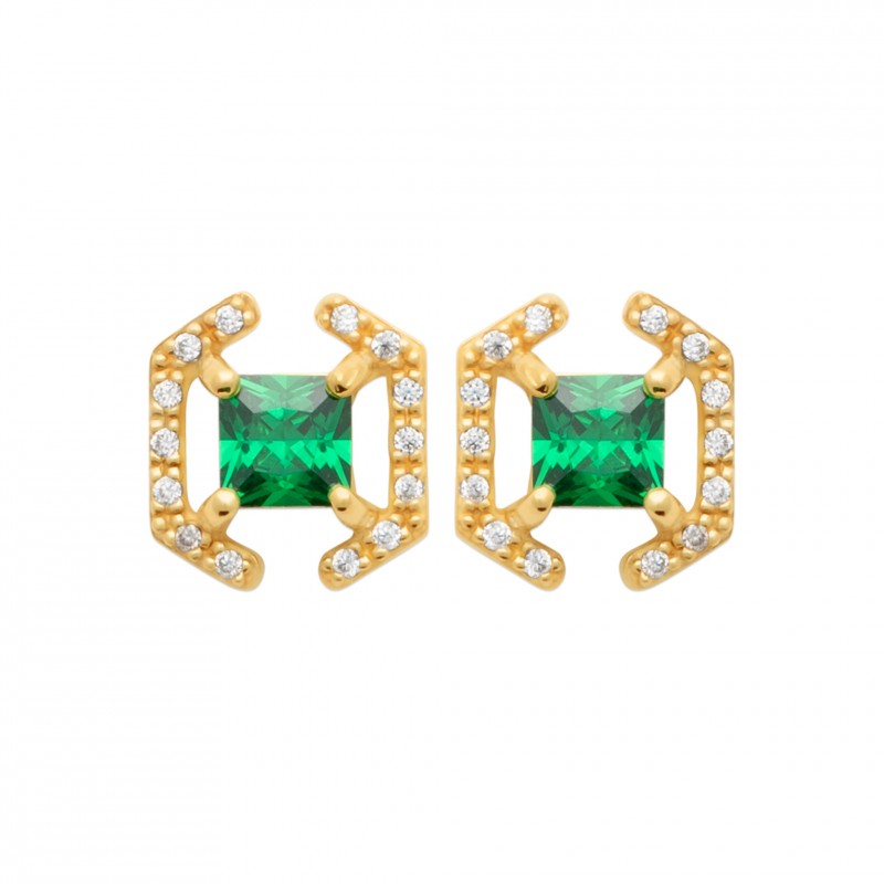 Boucles d'oreilles puces pierre carré cristal vert et zirconium