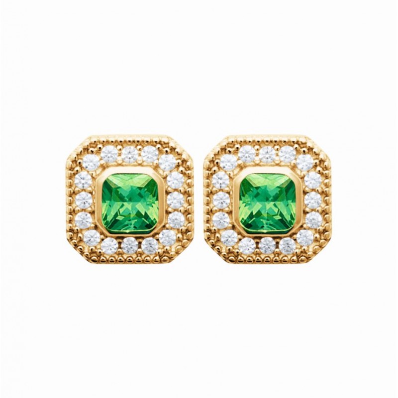 Boucles d'oreilles puces plaqué or pierre cristal vert pavé zirconium
