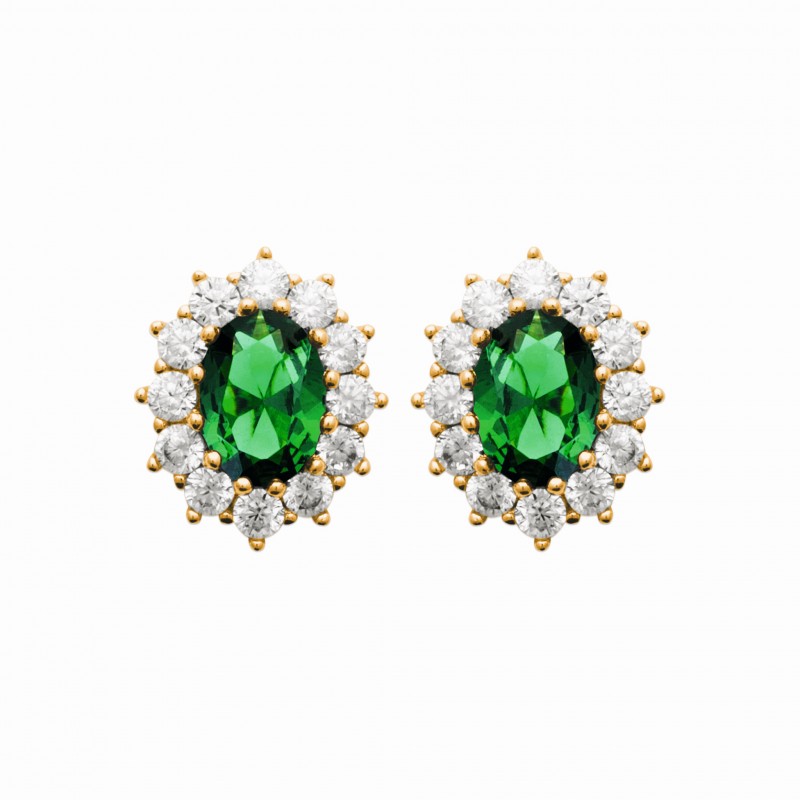 Vous ne pourrez plus vous passer de cette magnifique paire de boucles d'oreilles puces femme en plaqué or 18 carats à pavé d'une pierre ovale en cristal vert pavé d'oxydes de zirconium