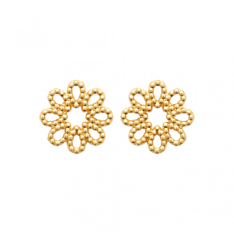 Boucles d'oreilles Puces Plaqué Or fleur dentelle
