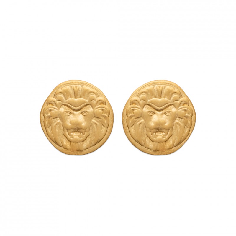Puces d'oreilles en plaqué or médailles lion style antique et artisanal