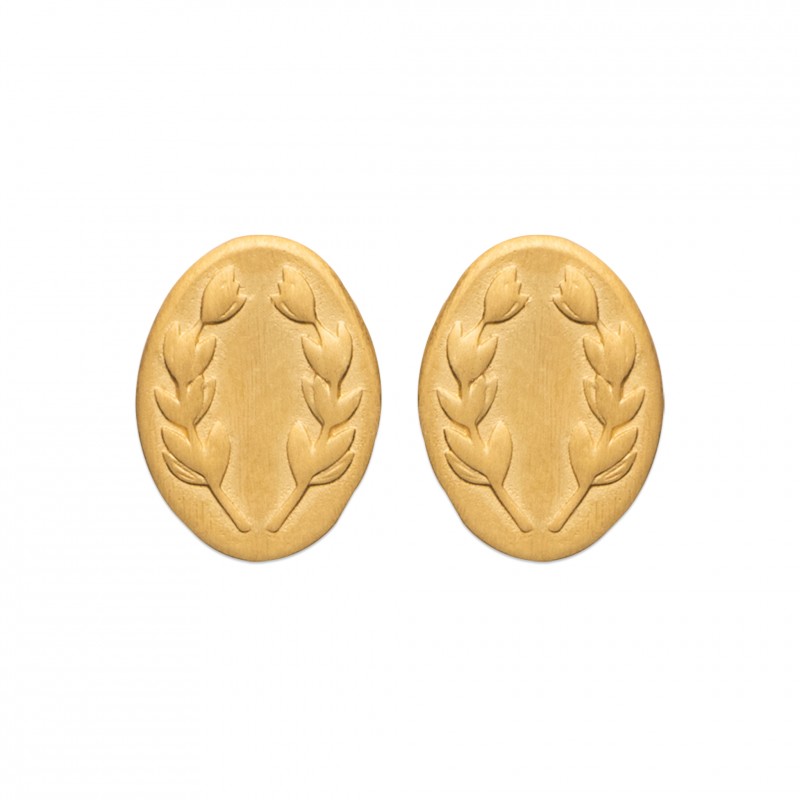 Puces d'oreilles en plaqué or médailles lauriers style antique et artisanal