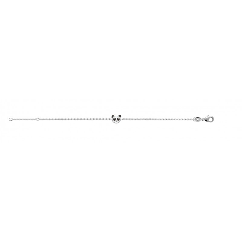 Adorable bracelet pour enfant en argent 925 rhodié Panda en émail noir et blanc