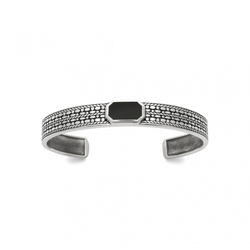 Jonc homme argent monture ciselée avec pierre en agate noire