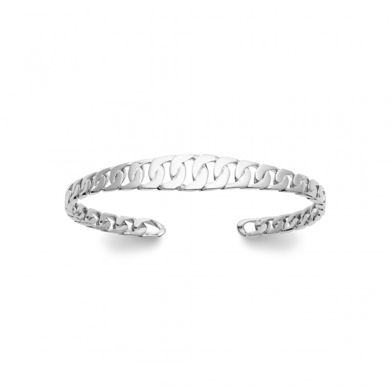 Style chic et intemporel pour ce jonc en argent rhodié monture chaines