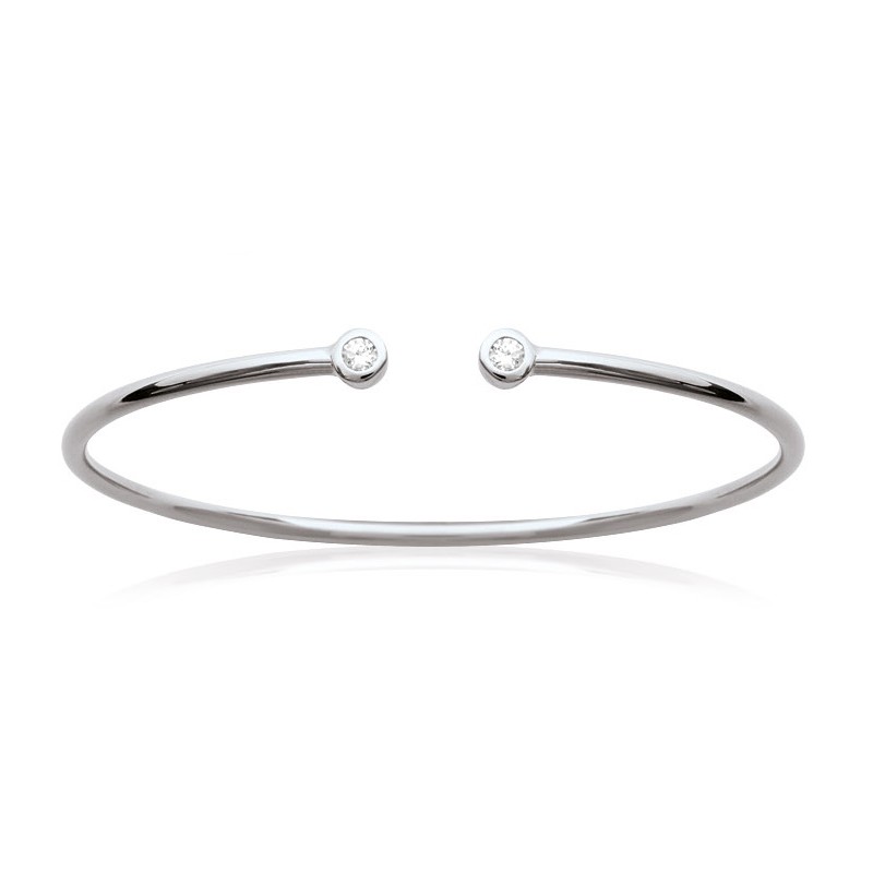 Jonc ouvert en argent massif 925/1000 rhodié pierres serties en ziconium blanc chic