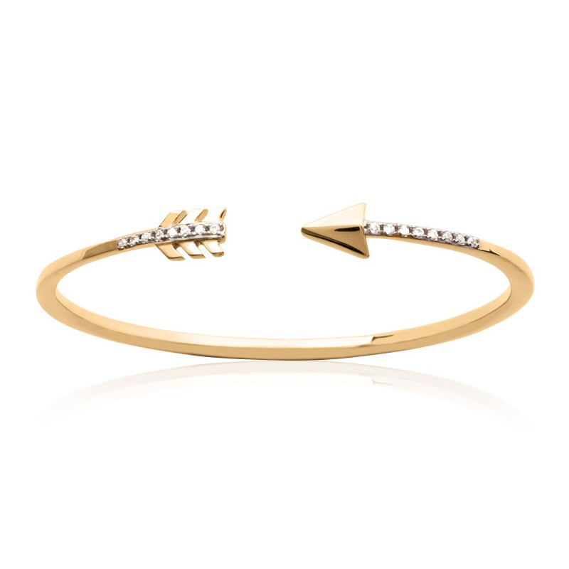Jonc ouvert en plaqué or fine flèche ciselée pavé en zirconium blanc