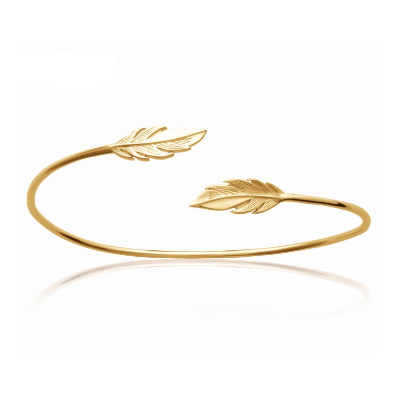 Jonc ouvert en plaqué or plumes finement ciselées mode