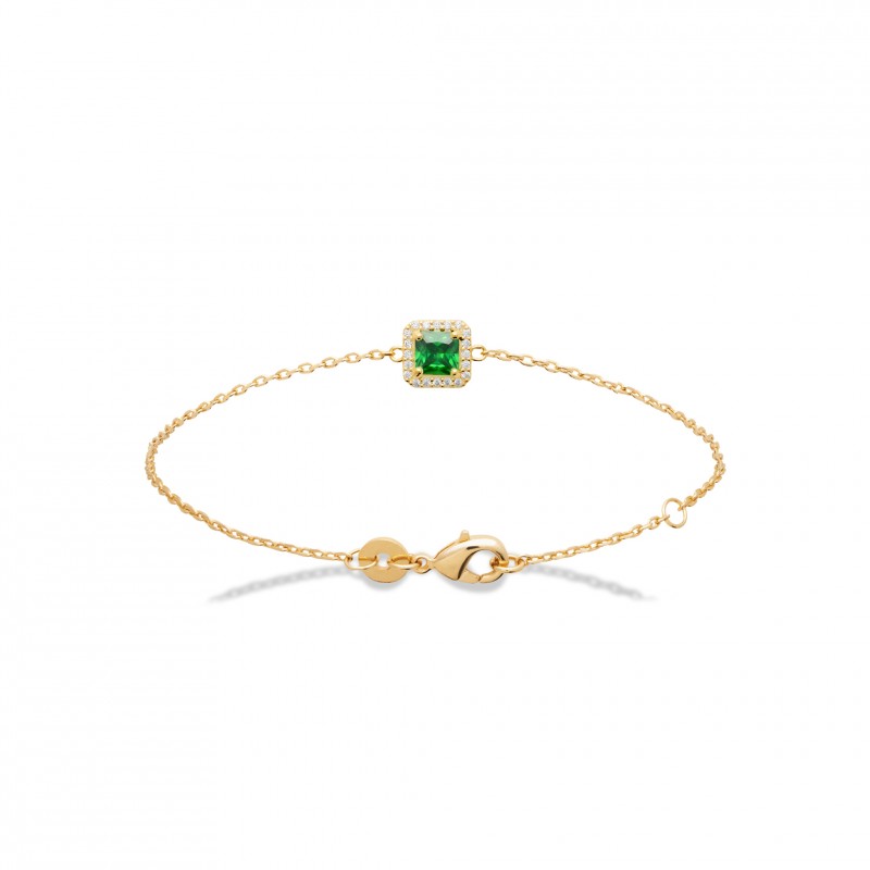 Bracelet plaqué or pierre carré en cristal vert et zirconium