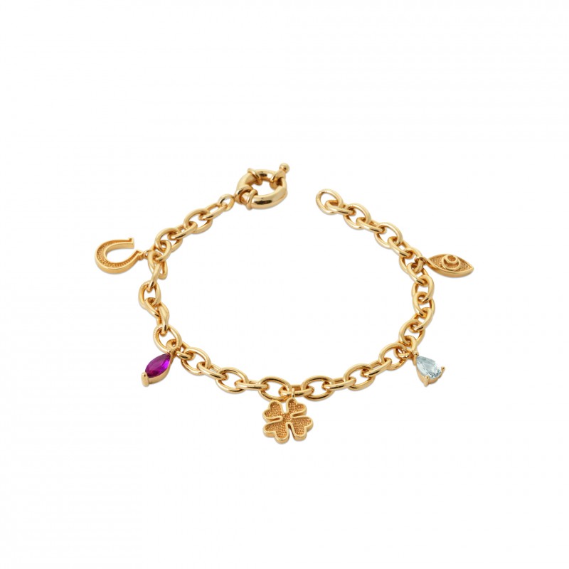 Bracelet plaqué or pampilles chance gouttes multicolores en cristal