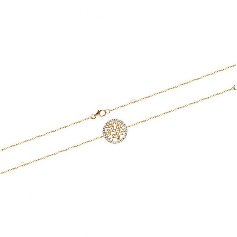 Bracelet en plaqué or anneau cercle arbre de vie pavé en zirconium blanc